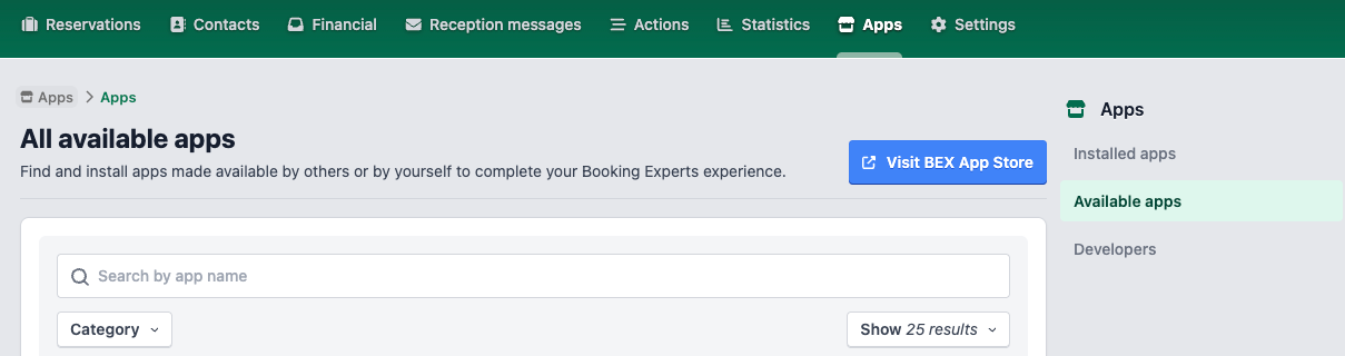 As an added bonus, the app developer experience will also change. Developers get their own app dashboard within the app store module, which Booking Experts will continue to improve after this redesign.