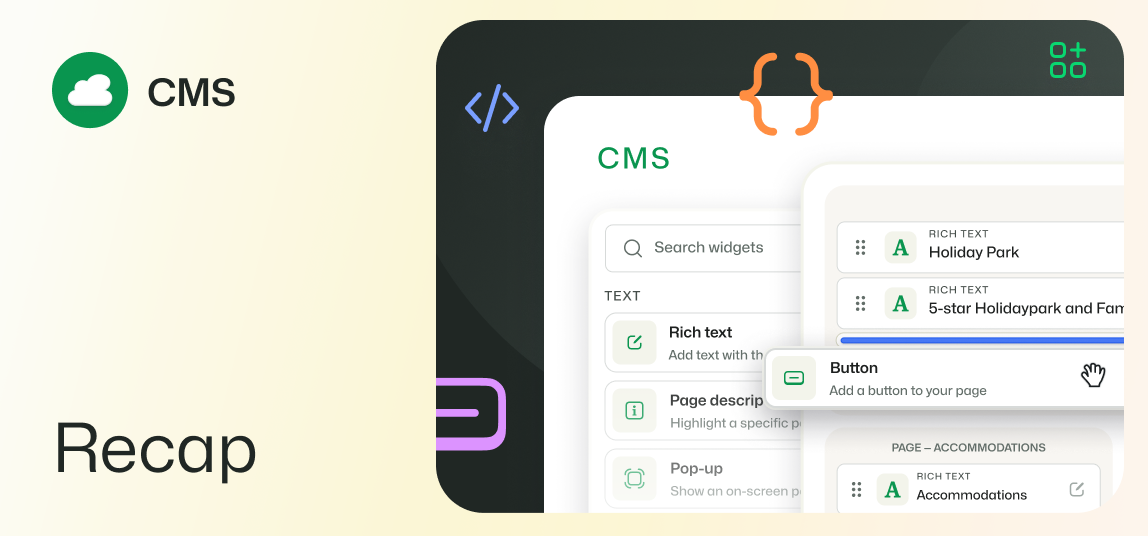 Das Erstellen von Seiten im CMS ist durch die Einführung von Live-Vorschauen für das Button-Widget jetzt schneller und intuitiver. Du kannst optische Änderungen an Farben, Labels und Stilen sofort während der Bearbeitung im Editor sehen. Das Speichern und manuelle Aufrufen einer Vorschau, um das Ergebnis zu prüfen, entfällt somit.