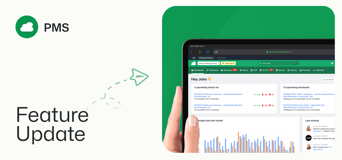 Alles wat een gast doet in het gastenportaal, zoals het bijwerken van een gastenlijst, het toevoegen van een kenteken of het bijboeken van extra’s, wordt nu automatisch vastgelegd in de reserveringshistorie in het PMS. Dit zorgt voor een transparant overzicht van alle door de gast geïnitieerde wijzigingen.